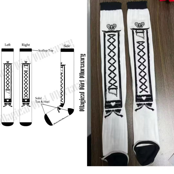Earlier this year, I created a cute ouji character with guillotine stockings for a class. I really enjoyed the design and quite a few people said they would like them as real legwear! I haven't seen guillotine motifs in lolita fashion and I thought it would be a nice little niche to fill.